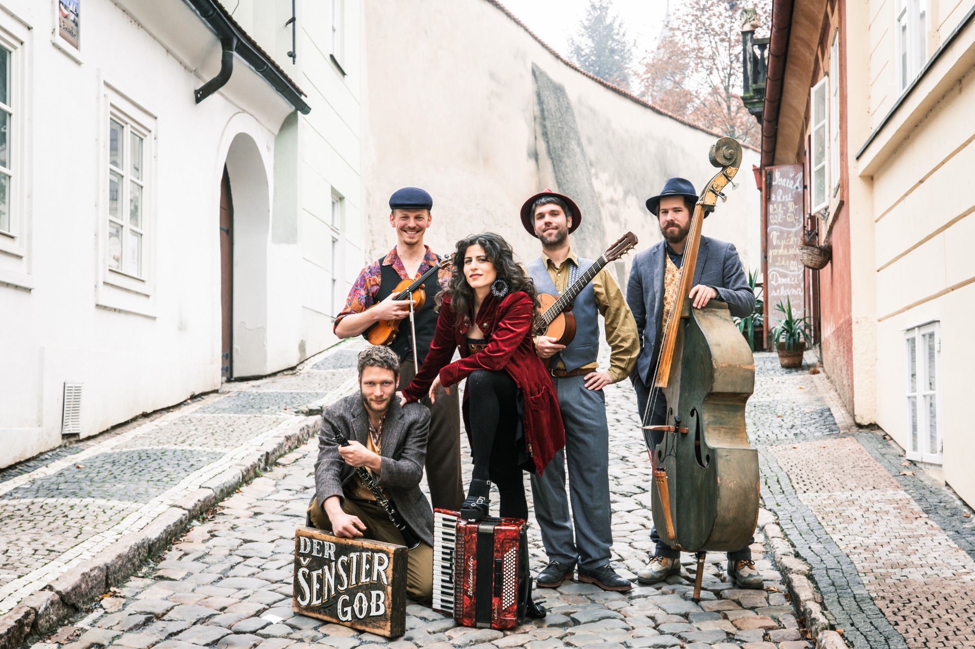 Der Šenster Gob is an acoustic band from Prague playing Gypsy, Jewish and Balkan music, travelling around Europe in a romantic green wooden caravan.
